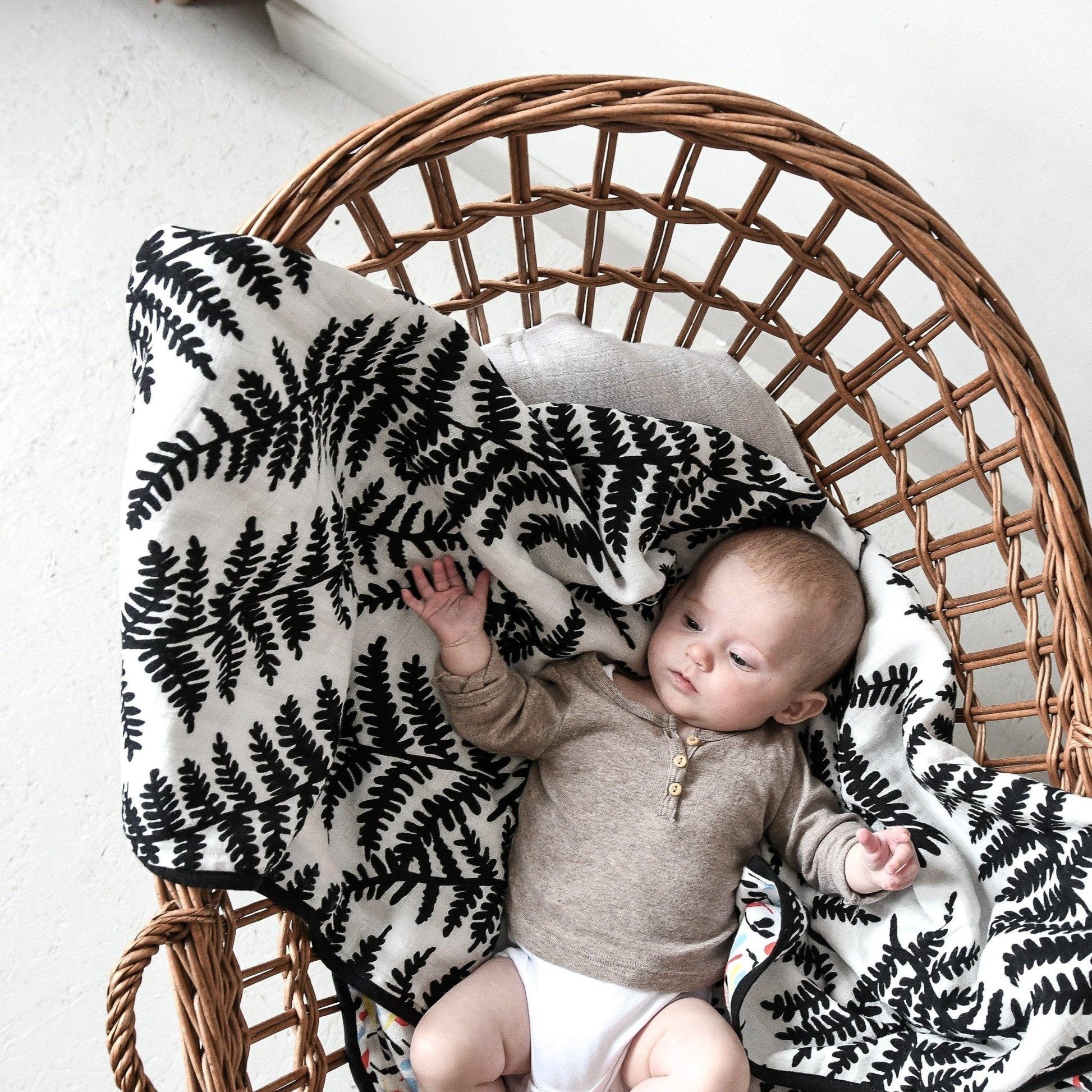 The reversible design features carefully researched botanical prints: delicate Fern patterns optimised for newborns to four months on one side, and bolder Sycamore leaf designs for babies five months and beyond on the reverse.